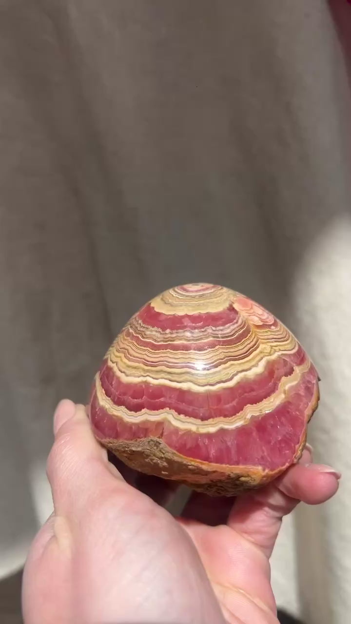 Esta pieza coleccionable de rodocrosita exhibe la belleza única y los patrones intrincados de esta impresionante piedra preciosa.