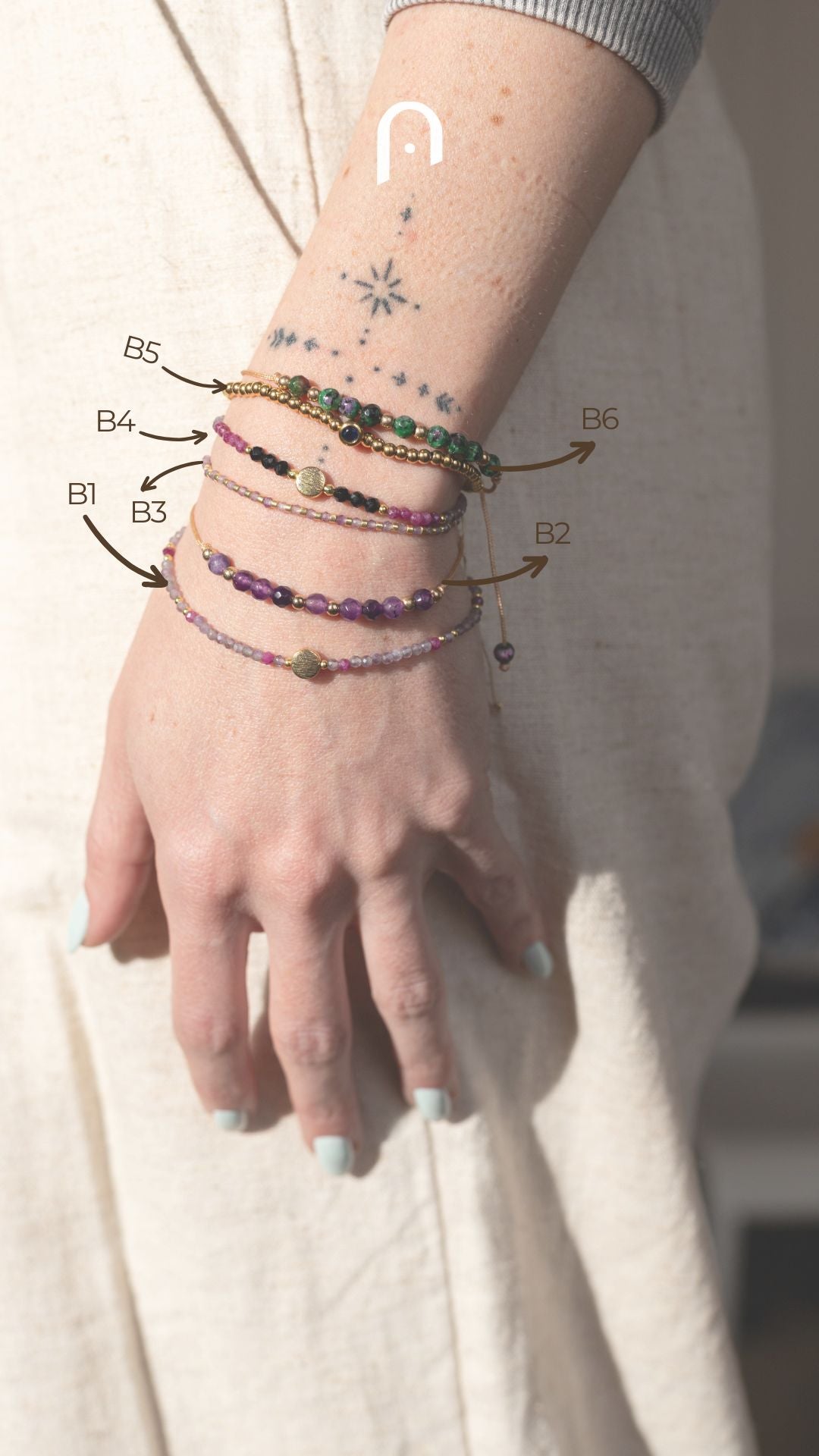 ✨ Todas las pulseras tienen una medida base de 15 cm y son extensibles hasta 20 cm, para adaptarse cómodamente a tu muñeca.