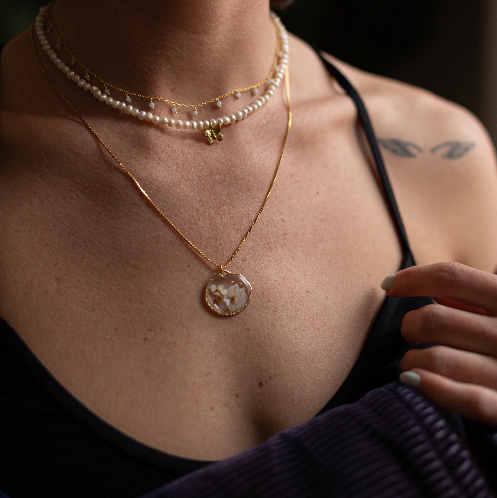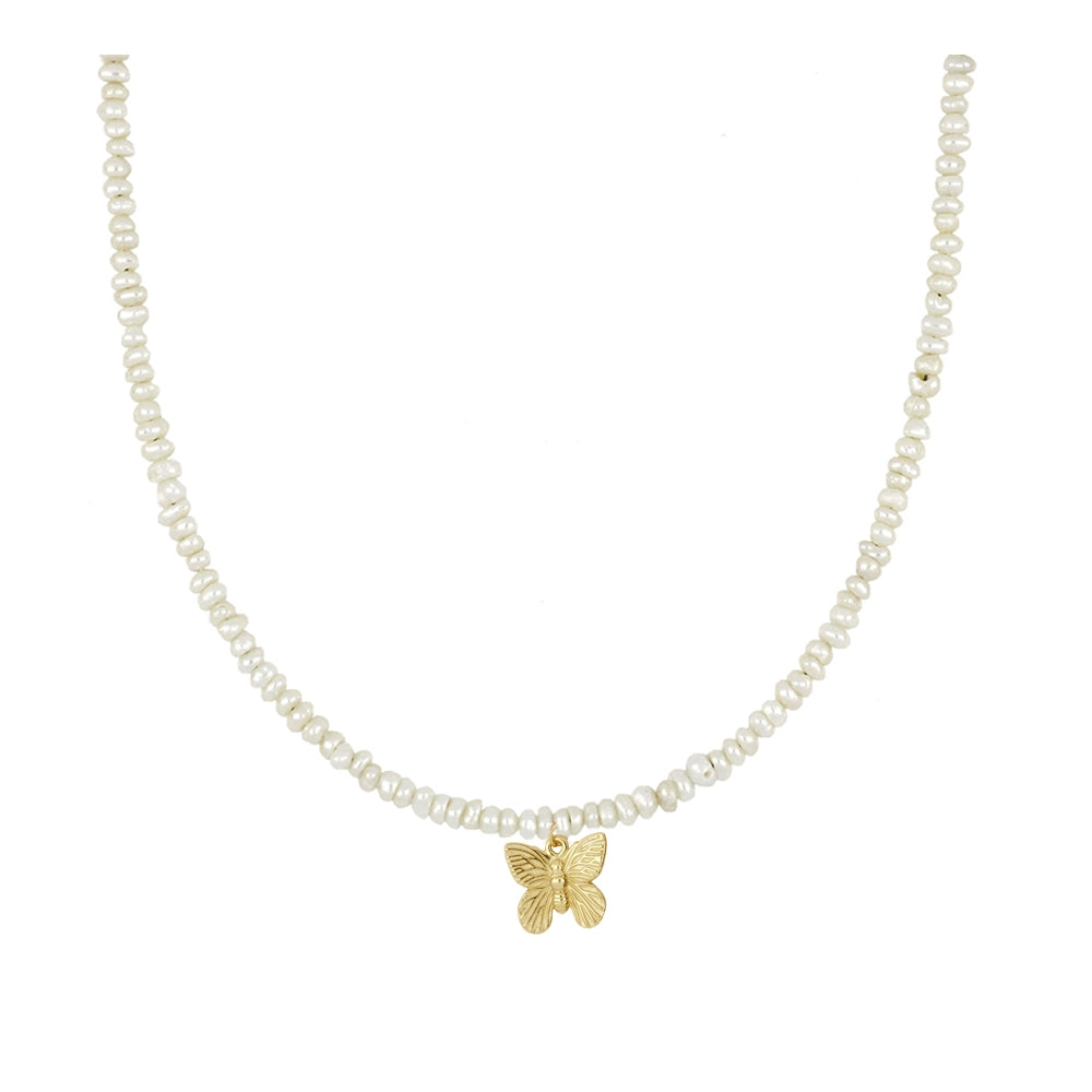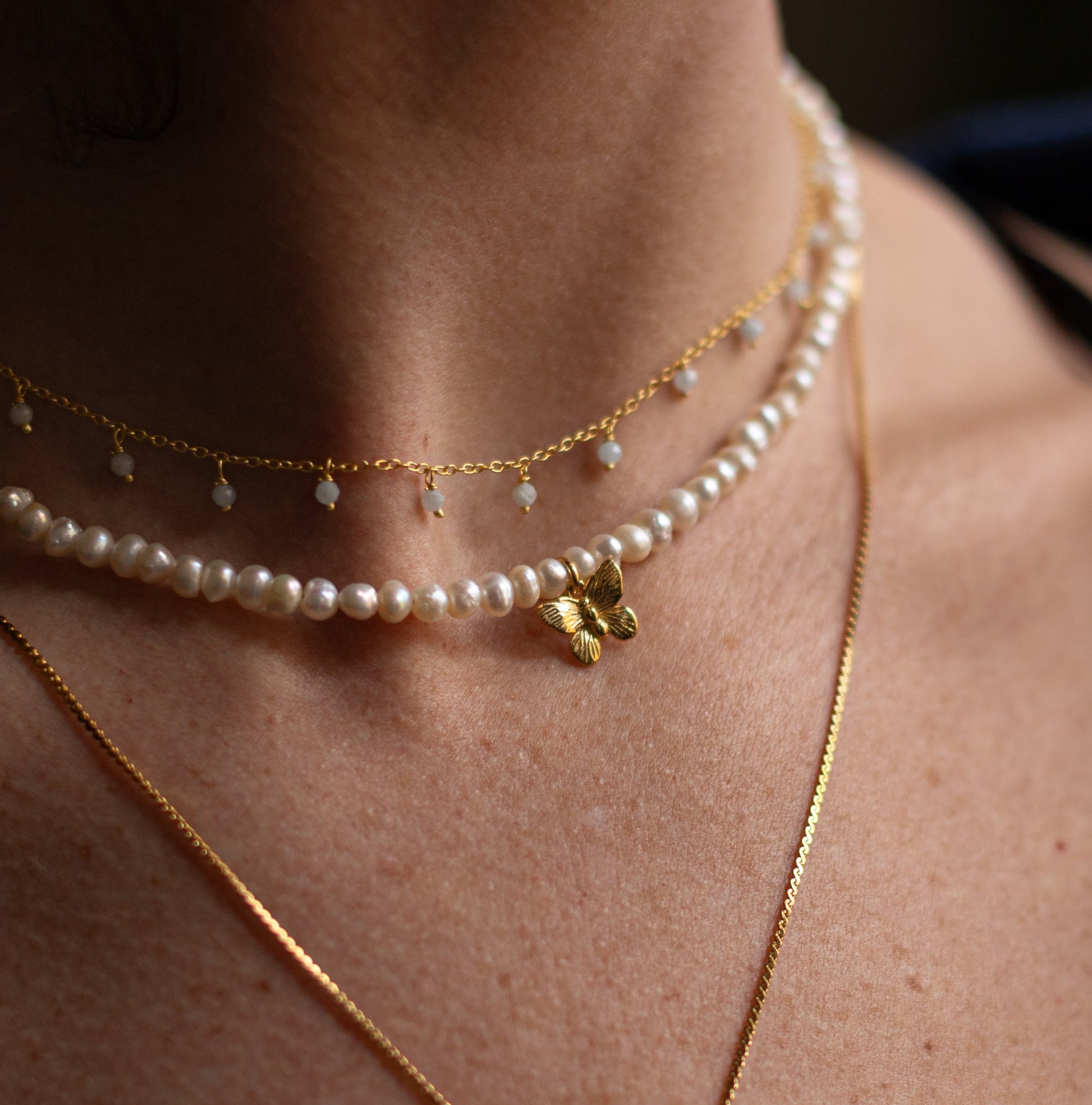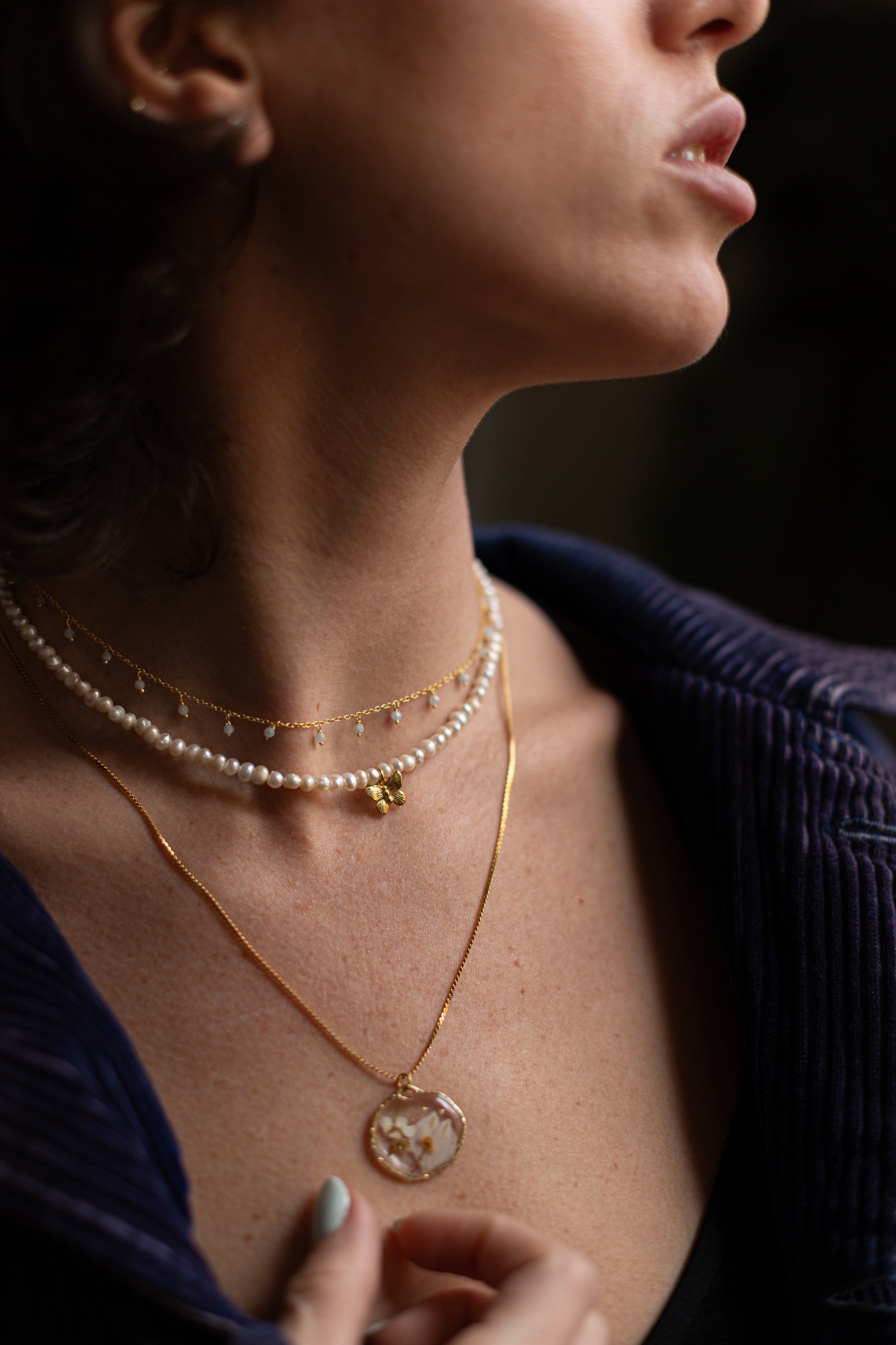 -Piedra: Gargantilla entera de perlas de río de 3.0- 4.0mm